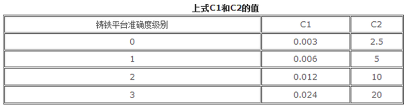 c1、c2--與平板準(zhǔn)確度有關(guān)的系數(shù) 見下表
