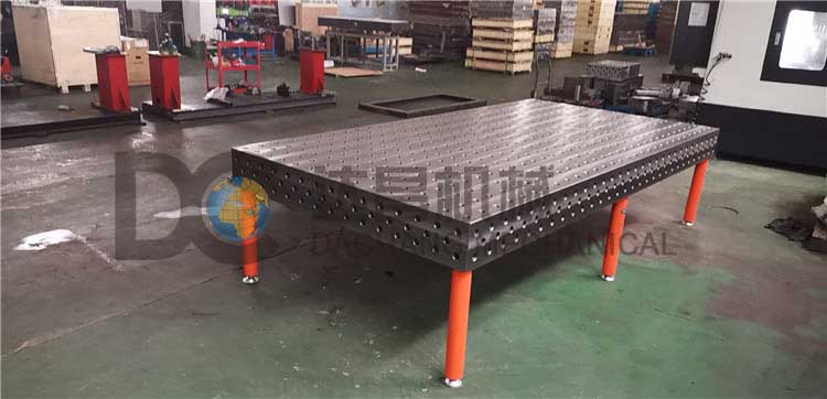 工作臺的五個工作面都有100x100 mm(D28系列)或50x50mm(D16系列)的帶有網格標注的孔。其五個面的平面、平行、垂直公差精度以及孔與孔的位置精度都是非常高的,保證在臺面上的定位和臺面與其它模塊之間的組合都具有足夠的使用精度要求。基礎臺面的尺寸從1000x1000mm到4000x2000mm可以任意選擇,非標尺寸可以定做。